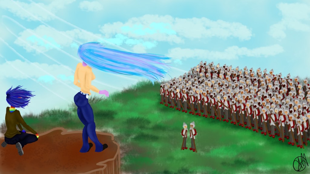 “Forget the emptiness of your rudderless lives, join something you can be proud of!” Liren finished off strong, but instead of cheers, she was simply met with less booing. Liren flew up from her spot under the soldiers; when she passed by them a few tried to grab her and uttered slurs that she was able to hear now.